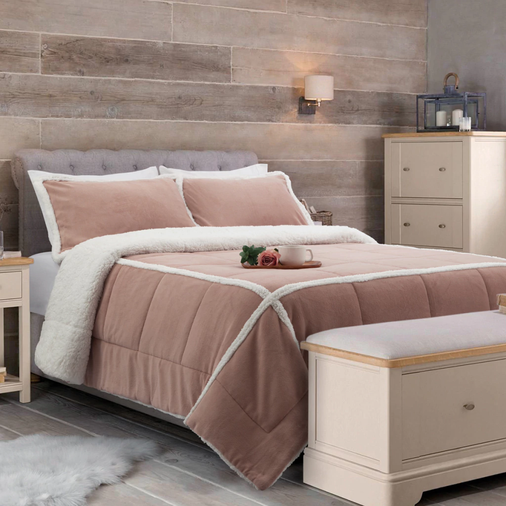 Jean Cartier. Kit de 2 y 3 piezas compuesto por edredón de coral fleece combinado con corderito en el frente y reverso + funda/s de almohadón. ¡PREMIUM!