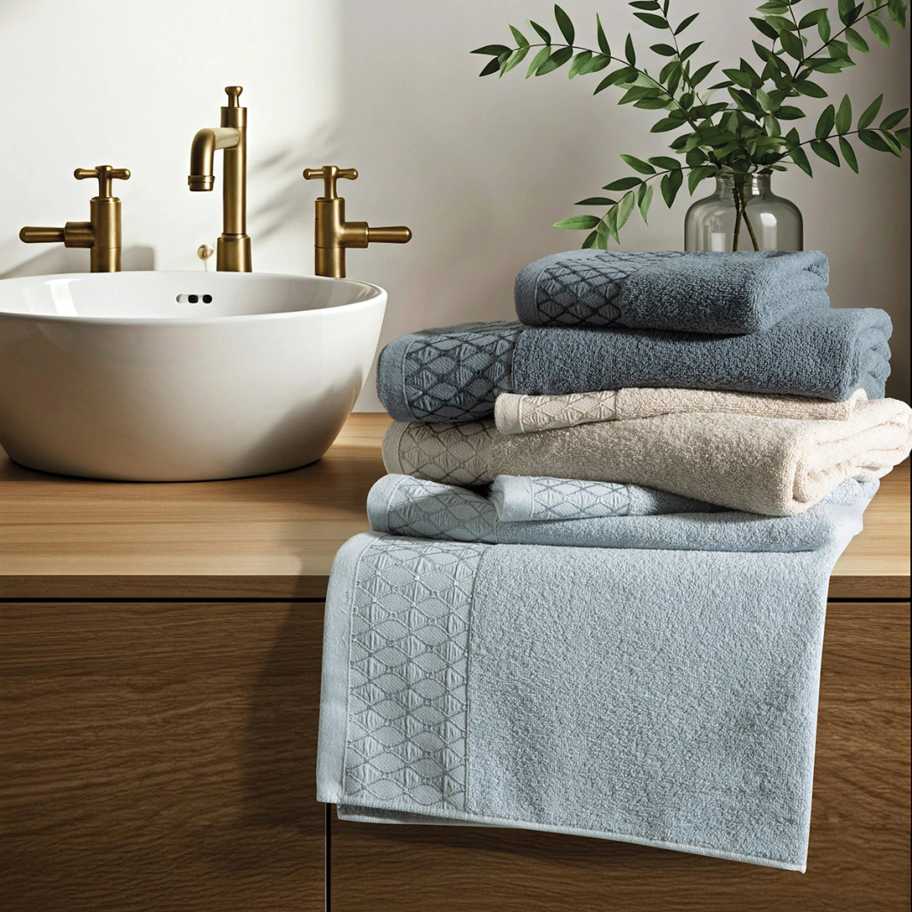 Jean Cartier · Juego de Toalla y Toallón Lisos con Guarda Jacquard · ¡PREMIUM!
